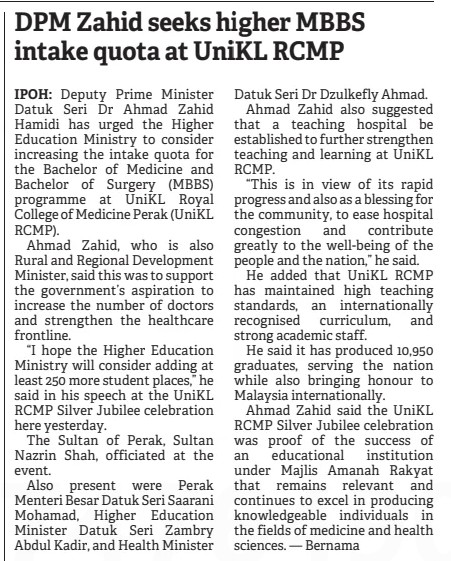 Title: DPM Zahid seeks higher MBBS intake quota at UniKL RCMP