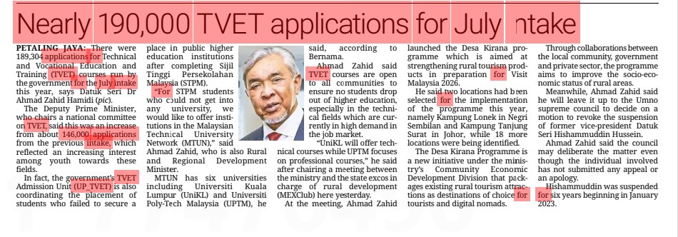 Nearly 190,000 TVET applications for July intake